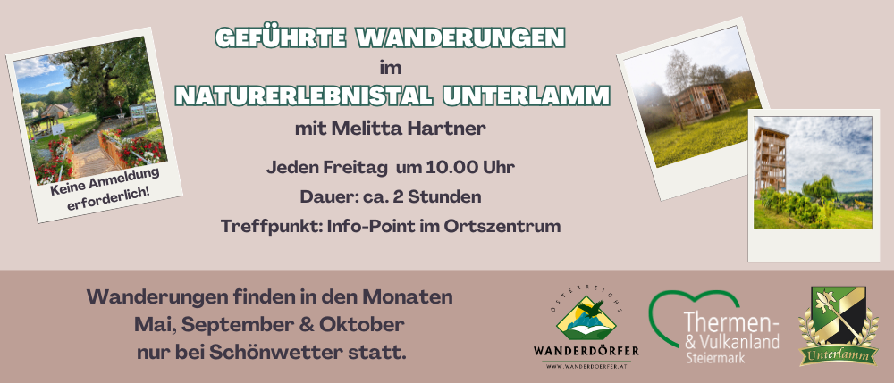 Die Gemeinde Unterlamm zeichnet sich durch eine einzigartige Kulturlandschaft und Artenvielfalt aus, welche in den neuen 12 Erlebensräumen entlang dieser 3 Erlebenspfade dargestellt werden.