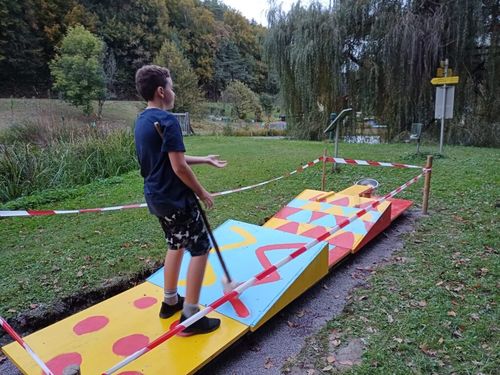 Das Eltern-Kind-Team der Gemeinde Unterlamm hat in Zusammenarbeit mit Eltern und Kindern einen Minigolfwanderweg geschaffen, die Spielflächen wurden von den Kindern bunt gestaltet.