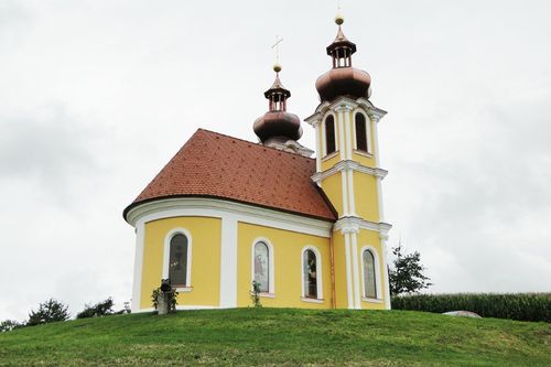 Die Kapelle im neobarocken Stil wurde von der Familie Friedl als Dank für die Genesung des Sohnes errichtet.